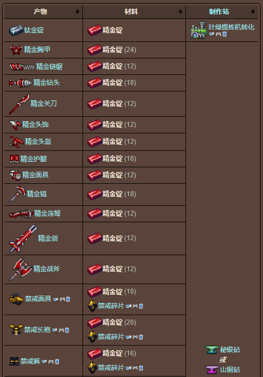 本文参考:https://terraria.wiki.gg/zh/wiki/精金锭