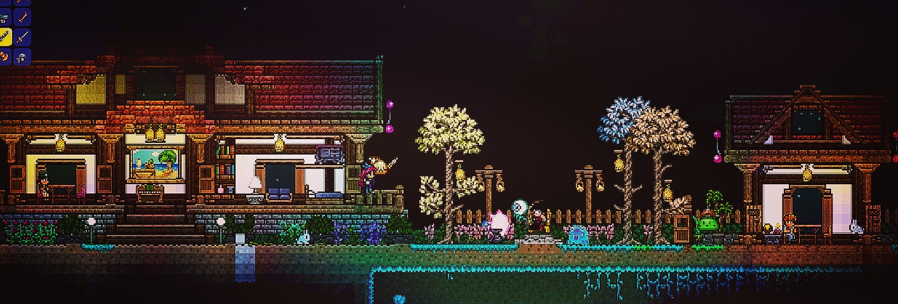 当时只是打算做一个大型剑冢,后面略微加工了一下,应该挺符合世外桃源这个主题的。而且五一劳动节嘛,正好种点树~